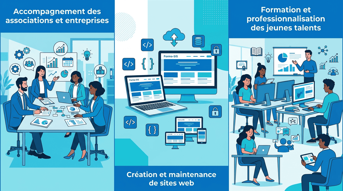Depuis 2007, Forma‑SIS a évolué d’un organisme de formation en Sport, Informatique et Sciences vers une structure d’accompagnement polyvalente, capable de porter des projets numériques, associatifs et éducatifs